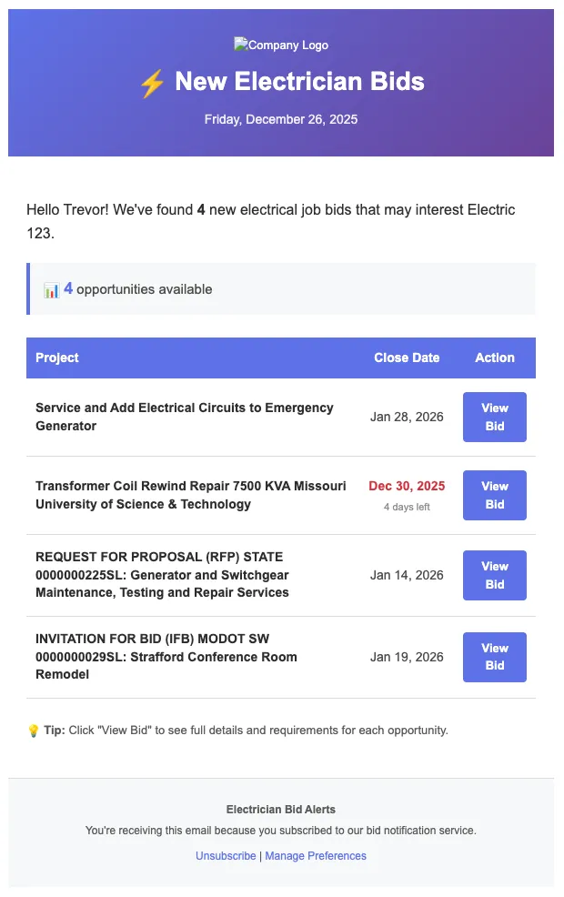 Most electrical contractors miss out on their best projects because they saw the bid two days too late—or never saw it at all. Between bidding, managing crews, and running a business, searching for work shouldn't be your second full-time job.